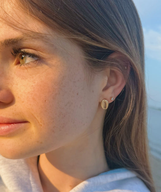 Gold Cowrie Shell Stud Earrings