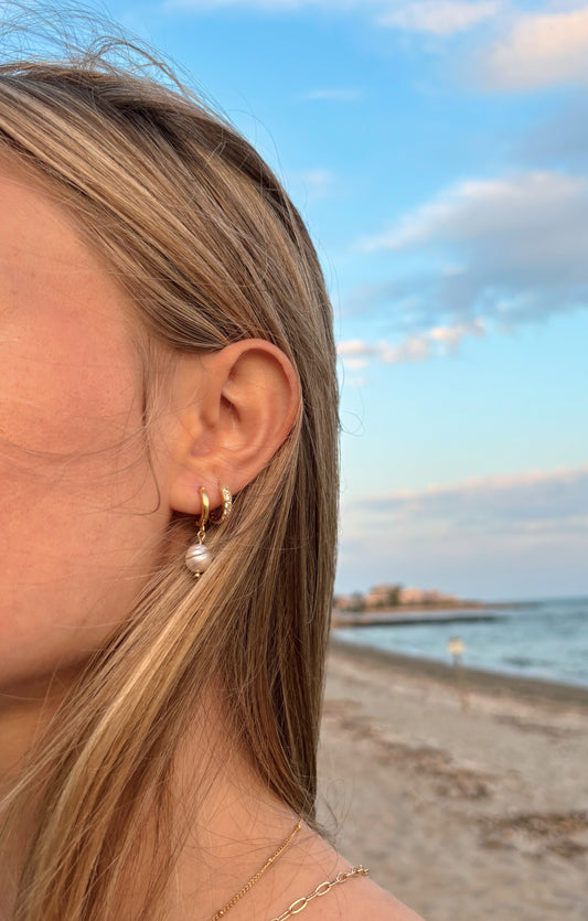 Oval Pearl Huggie Earrings
