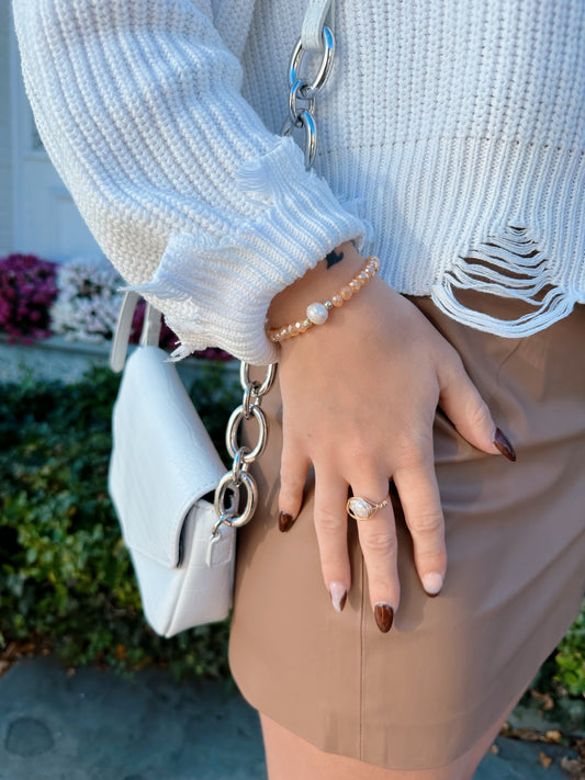 Peach faceted bead and pearl bracelet