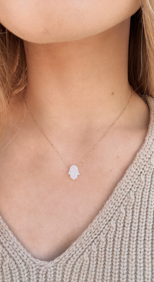 Hamsa opal charm necklace