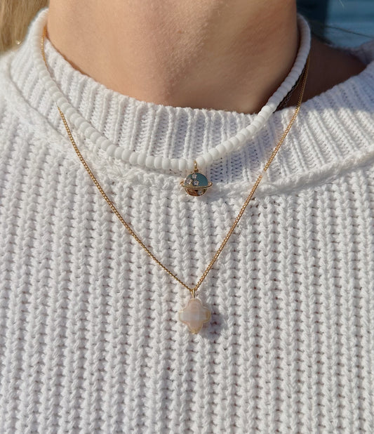 Ivory glass clover pendant necklace