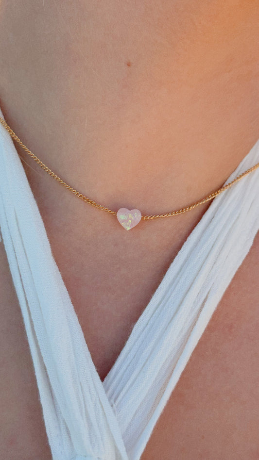 Dainty opal heart necklace