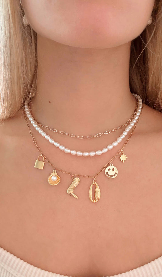 Chunky Paperclip Chain and Pearl Toggle Necklace