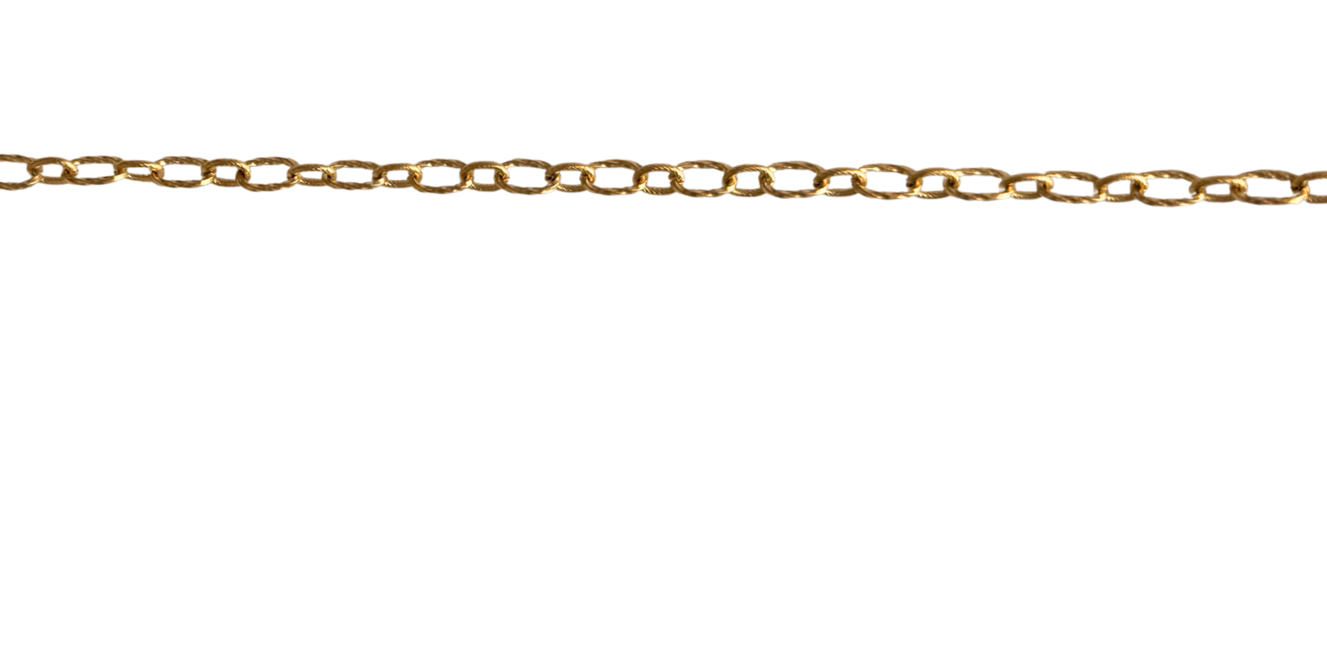 14k gold plated over a brass base metal mix. Lead and Nickel free. Textured antique gold circular paperclip chain for charm bar. 16 inches in length with a 2 inch extender chain.