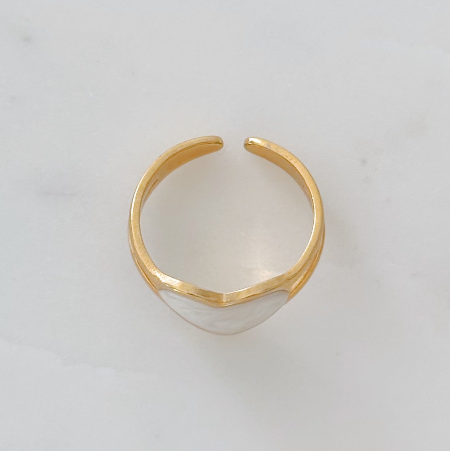 The Lover Girl Enamel Heart Ring is a bold yet romantic statement piece made for everyday wear. Crafted from gold PVD stainless steel, this chunky gold ring features a large pearl-white enamel heart at the center, framed in warm gold for a soft, luminous finish.